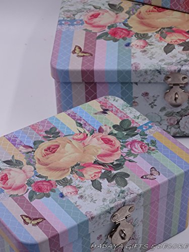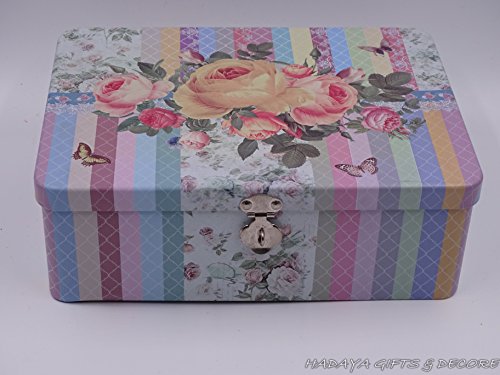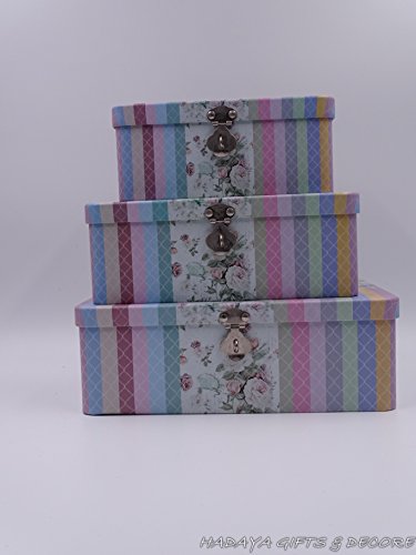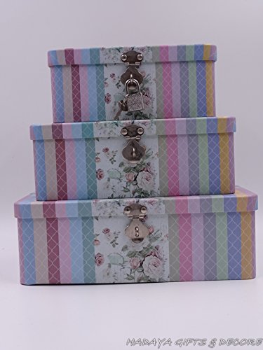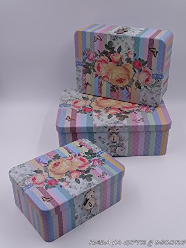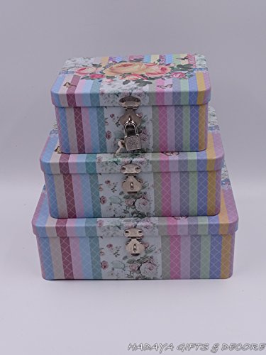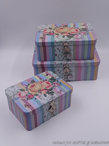 Multicolored French Style multipurpose storage tins, shabby chic, Set of 3 with lock