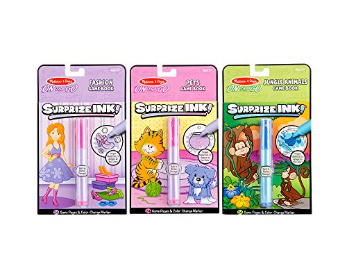 On the Go Game Books make the perfect travel toys! Each of these fun-packed activity books for kids includes an invisible-ink marker that stores right in the front cover. Pop it out to color in scenes, complete crosswords, follow mazes, find hidden pictures and more . . . and see Surprize Ink images appear as you color! Includes 24 jungle-themed pages, bound in a compact tablet format with a rigid back cover to support comfortable laptop coloring.Feature