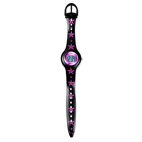 -. Binding : Watch -. Brand : Lucky by Dingbats -. Department : girls -. EAN : 0811077000103 -. Feature : Fun Nautical Stars theme / Big Digit Digital Display / Time/Day/Date functions / Water Resistant Construction / Limited One Year Warranty / Stainless Steel Caseback / Fits up to a 7 inch wrist -. Label : Too Stars Inc. / Dingbats -. Manufacturer : Too Stars Inc. / Dingbats -. MPN : LKW310 -. PartNumber : LKW310 -. ProductGroup : Watch -. ProductTypeName : WATCH -. Publisher : Too Stars Inc. / Dingbats -. Studio : Too Stars Inc. / Dingbats -. Title : Lucky Kids Digital Watch "Nautical Stars", Girls, Black #LKW310 -. UPC : 811077000103