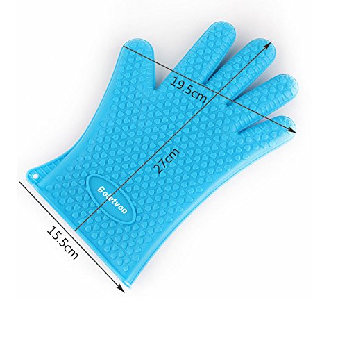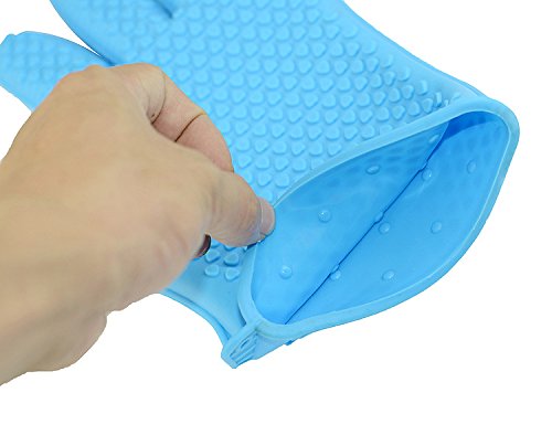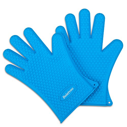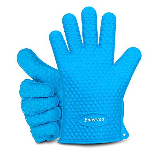 Boietvoo Silicone Gloves, Heat Resistant Oven Mitts Barbecue Gloves for Cooking Baking Potholder Non-Slip Food Grade Silicone for Perfect Grip, Ultra Durable (Blue) 2 PCS