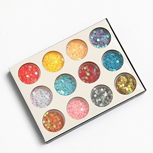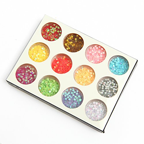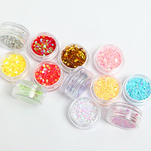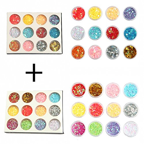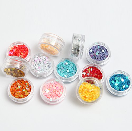 DIY 12 Colors 2 Sets 24 Jars of Flower & Star Iridescent Glitter Sequins Spangle for Nail Art Tip Deco Crafts Project