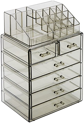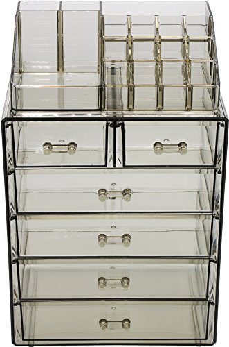 - DURABLE & LONG-LASTING — Made of acrylic (durable clear plastic) — Includes 4 large drawers, 2 small drawers, and 16 slot compartments — Drawers slide open smoothly and handles are easy to grip — Can be used alone or to complement any acrylic organizers sets by Sorbus — Makeup and Accessories are NOT included — (Beauty Note: The color is a combination of a smokey black with deep green undertones to give off that earthy vibe!) — Measures approximately 9.25” L x 6.25” W x 14.25” H