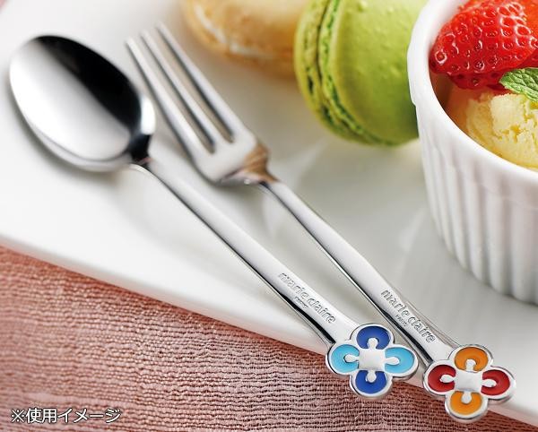 | marie claireの「c」を4つ組み合わせて考案されたクローバーをあしらったスプーン&フォークセットです。揃いのデザインなので普段使いや来客時のおもてなしなど、幅広くお使いいただけます。 |