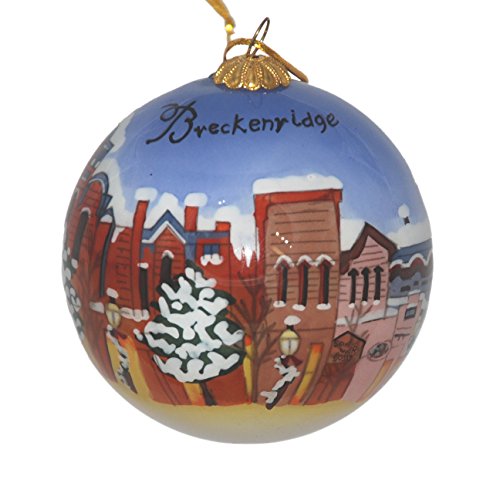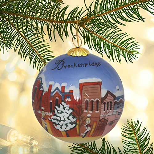 Artist rendering of main street Breckenridge: Spin this ornament 360 degrees to view all of Breckenridge Main Street, with colorfully painted buildings that house many shops, galleries and restaurants.