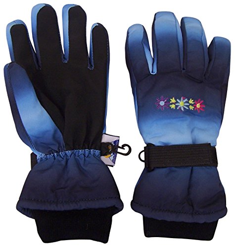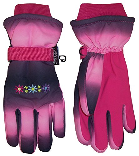 Binding : Apparel Product Description N'Ice Caps Girls Thinsulate and Waterproof Naturally Faded Tye Dyed Ski Glove with Multi Flowers Embroidery. Due to natural fading process no two are exactly the same. Has sure PVC grip on palm, fingers and thumbs. Knit cuffs, adjustable velcro wrist strap, elastic under wrist. Sizes available (with product dimensions): One size fits 3-4yrs (3.5" across palm, 5.5" from elastic to end of glove middle finger); One size fits 4-6yrs (3.75" across palm, 5.8" from elastic to end of glove middle finger); One size fits 6-8yrs (4" across palm, 6.4" from elastic to end of glove middle finger); One size fits 8-10yrs (4.0" across palm, 6.6" from elastic to end of middle finger); One size fits 10-12yrs (4.25" across palm, 6.75" from elastic to end of middle finger); One size fits 13-15yrs (4.5" across palm, 7.0" from elastic to end of middle finger). Colors: fuchsia tye dye, purple tye dye. Tested and approved as per CPSIA standards. 0