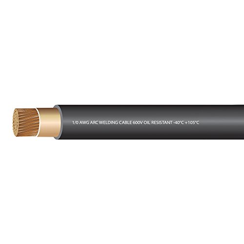 1/0 Gauge Premium Extra Flexible Welding Cable 600 VOLT - BLACK - 25 FEET - EWCS Spec - Made in the USA!