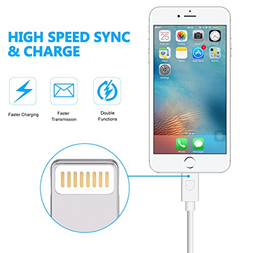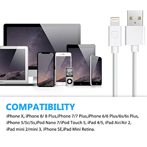 Studio : Sundix Publisher : Sundix Binding : Electronics Product Description Enhanced Performance and Safety Premium quality - Covered Lightning Charging cable, faster charge and data transfer, built-in chip set ensures safety for lightning devices. High-quality copper wire maximizes signal quality, ensures maximum performance Universal Compatibility? iPhone X/8/8 plus/7/ 7 plus, iPhone 5/ 5c/ 5s/SE, iPhone 6/ 6 Plus/6s/6s Plus, iPod Nano 7, iPod Touch 5, iPad4/Pro, iPad Air/ Air 2, iPad mini4/3/2, Mini Retina? NOT compatible with iPhone 4, iPad2, iPad 3, iPod Nano 6, iPod Touch 4 Package Contents 5Pack 3FT lightning cables in white color Extra Convenience 5packs give you more back-up choices in case that you cannot find your cable Standard Length Perfect 3ft length -- You can feel free to charge or sync your phone without worrying about the tangled cable Warranty Support? It comes with 12-month warranty and we provide long-term technical support, please feel free to contact us if you need any assistance Warm Tips a. Please do not wiggle the cable out of your device after finishing a charging?? b. Please ensure the power output do not exceed 2 A/ 5V or 6V/ 3A when charged with our lightning to USB cable?? c. Please avoid covering the charging cable or phone with any non-thermal covering, such as quilt, blanket?? d. please keep the connector dry and clean 0