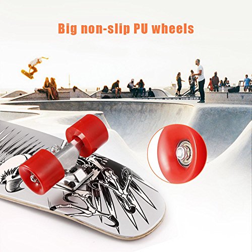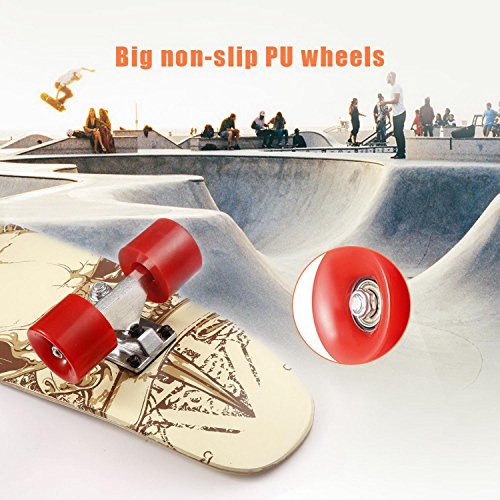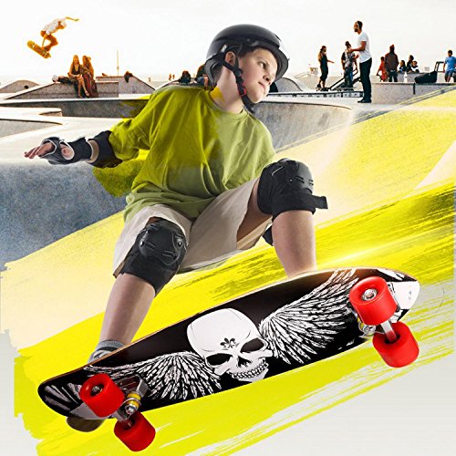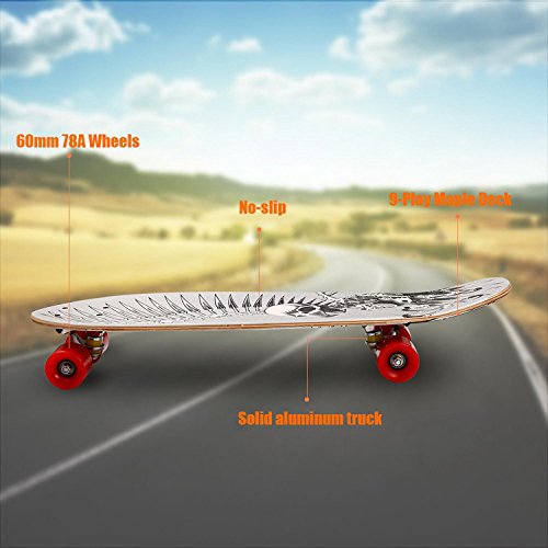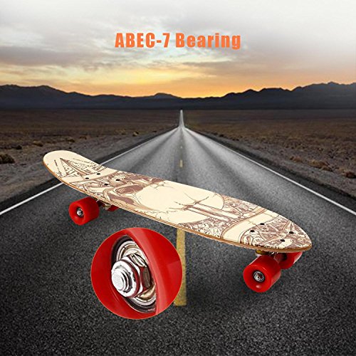 Studio : Dtemple Publisher : Dtemple Product Description >>>Product Specification: 100% Brand New. Material: Wooden, Aluminum Alloy, Plastic (PU) 7 Colors: #1, #2, #3, #4, #5, #6, #7 Item: Skateboard Shape: Cruiser Style Feature: Non-slip and Frosting Surface Deck Size: 71.5 x 19cm/ 28.15 x 7.48 inch Height (Board to Floor): 10cm/ 3.94 inch Wheel Diameter: 6cm/2.36 inch Wheel Width: 4.5cm/ 1.77 inch Wheel Quantity: 4 Ideal for: For Outdoor Sports Occasion: Garden, Yard Pattern: Print Quantity: 1 Piece Wooden and aluminum alloy cruiser style skateboard. Non-slip and frosting surface design. 28 ' Long x 7.5 ' Wide Deck, fashion print pattern. Ideal for your outdoor sports having fun with your skateboard. Lightweight with the colorful pattern, portable brings more fun to children and adults. >>> Package Content: 1 x Skateboard ----------------------------About The Return Policy----------------------------