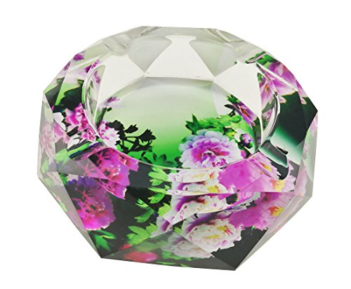 Classical Colorful Peony Flowers Pattern Transparent Octangle Shape Crystal Glass Cigarette Ashtray For Home Office Tabletop Desk Decoration Father's Day Gift