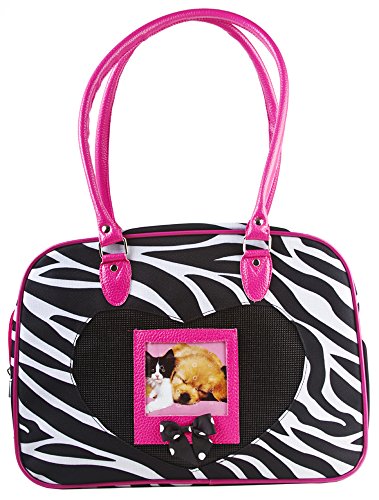 -. Binding : Misc. -. Brand : P.R.Ivate Label -. Color : Zebra - Pink -. EAN : 0702142005386 -. Feature : Front zippered pocket for treats / Easy carry handles 14" drop for over the arm carry. / Soft plush trim for pet comfort / Velcro top closure with side netting on both ends / Folds flat when inside base support is removed for easy storage -. Label : P.R.Ivate Label -. Manufacturer : P.R.Ivate Label -. MPN : NZ7216P -. NumberOfItems : 1 -. PackageQuantity : 1 -. PartNumber : NZ7216P -. ProductGroup : Pet Products -. ProductTypeName : PET_SUPPLIES -. Publisher : P.R.Ivate Label -. Size : 16 x 12 x 7.5 -. Studio : P.R.Ivate Label -. Title : Zebra Stripe Nylon Pet Carrier Dog Cat 10 Lbs Pink Trim -. UPC : 702142005386