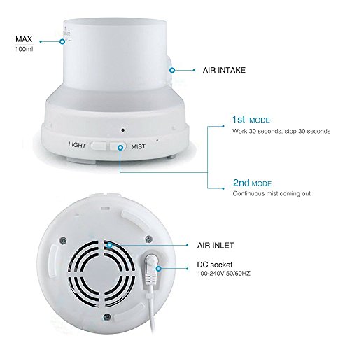 • 100ml capacity provides 6.5 hours of intermittent mist, or 3.5 hours of constant mist with an Auto shut-off feature for safety when water runs low.Automatic timers, control the tiem and how long you want it to work, suitable for both adults and children to use.