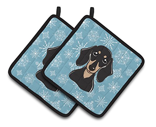 Caroline's Treasures Snowflake Smooth black & Tan Dachshund Pair of Pot Holders BB1649PTHD, 7.5HX7.5W, Multicolor