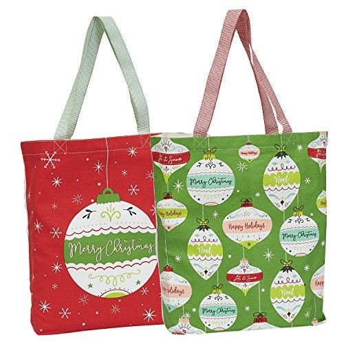 DII Cotton Christmas Holiday Candy Tote Gift Bag, 15x16x4" Set of 2-Ornaments