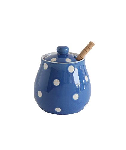 Creative Co-op Stoneware Honey Jar with Wood Dipper, Blue
