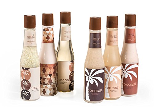 Tropical Milky Coconut bath and body spa gift set- shower gel, bubble bath, bath salts, body butter, body scrub, body lotion,