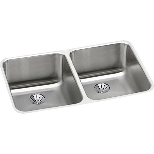 Elkay Lustertone ELUH311810PD Equal Double Bowl Undermount Stainless Steel Kitchen Sink with Perfect Drain