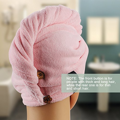 - Double Button Design -- Perfect for adults and kids with any length and volume of hair. Gourd Shape -- Can fit well and firmly wrapped our wet hair, but not easy to slip.