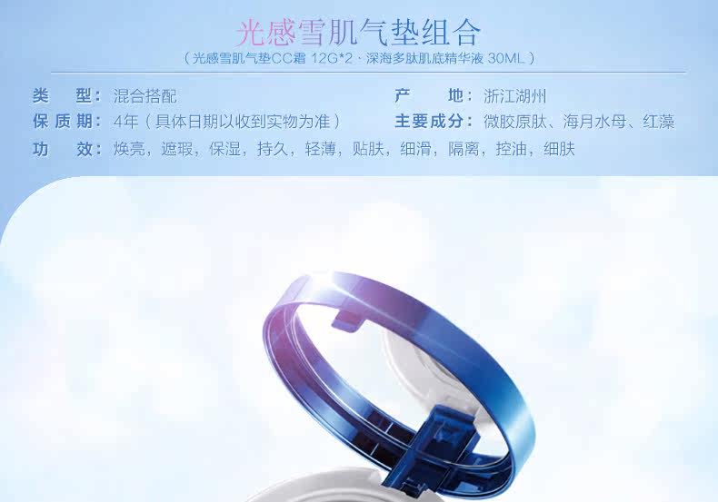 珀莱雅光感雪肌气垫CC霜礼盒装 遮瑕提亮肤色保湿控油气垫霜