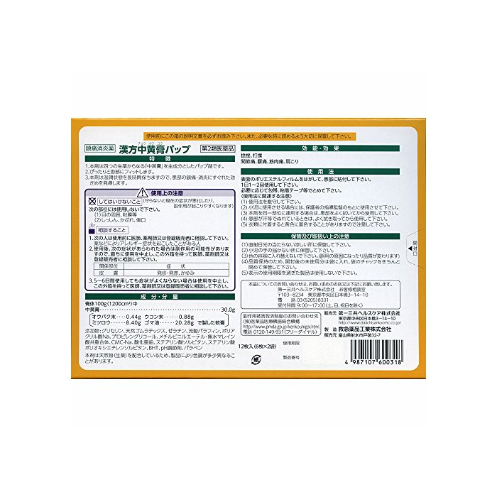 제일산쿄 헬스케어 【제2류의약품】한방 중황 고파《푸》 12매