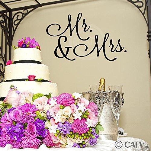 Mr. and Mrs. Vinyl Lettering Self Adhesive Decal (12.5"H x 21"W, Black)