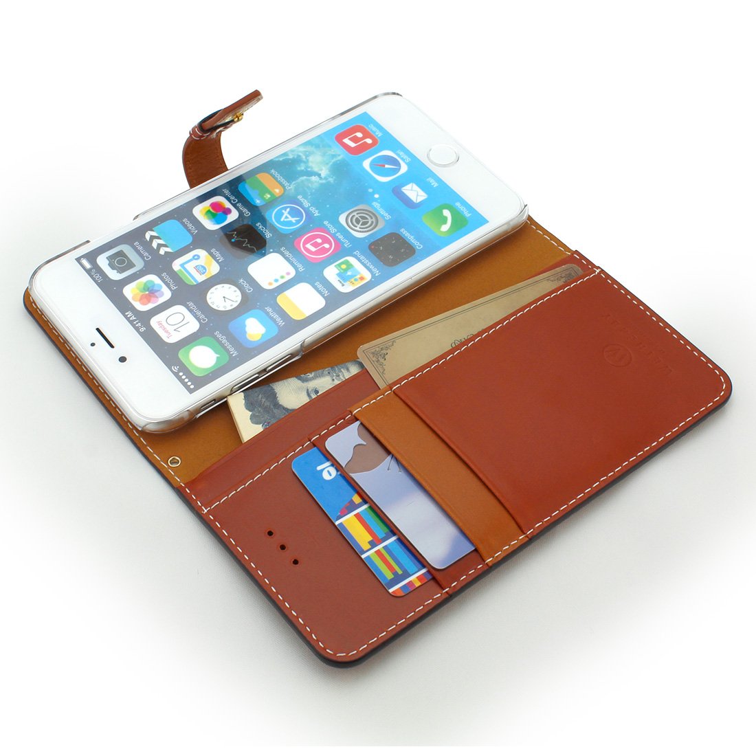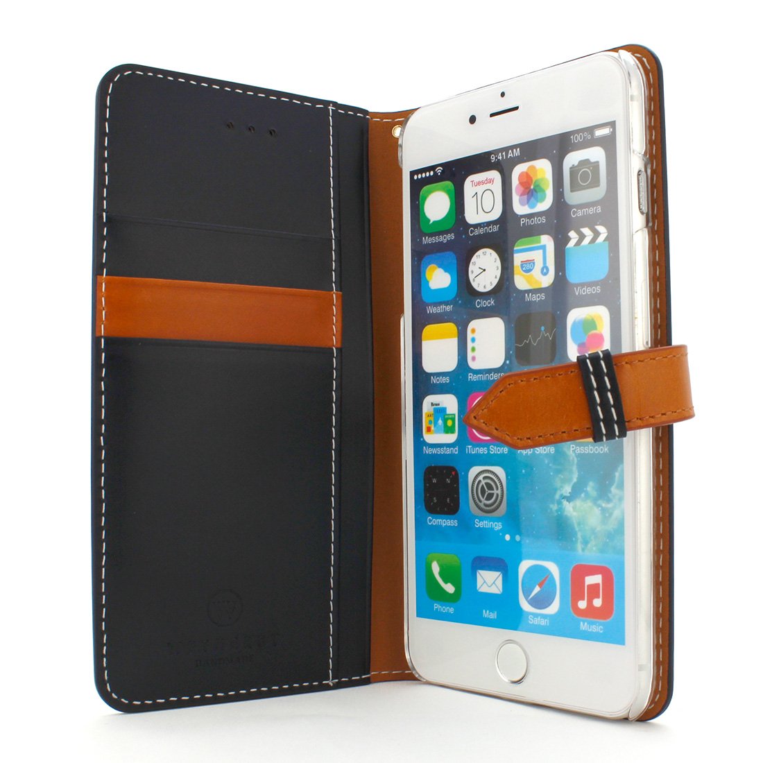 Using fine cow genuine leather, it is a notebook type case stopped with a button.