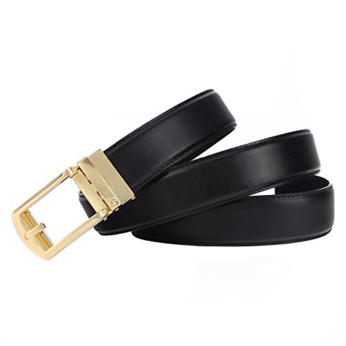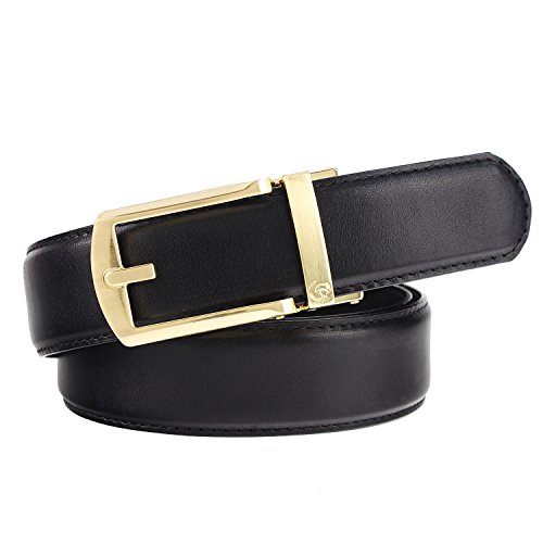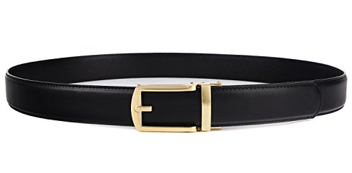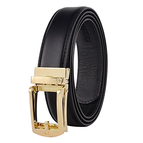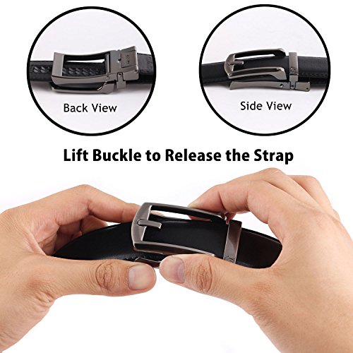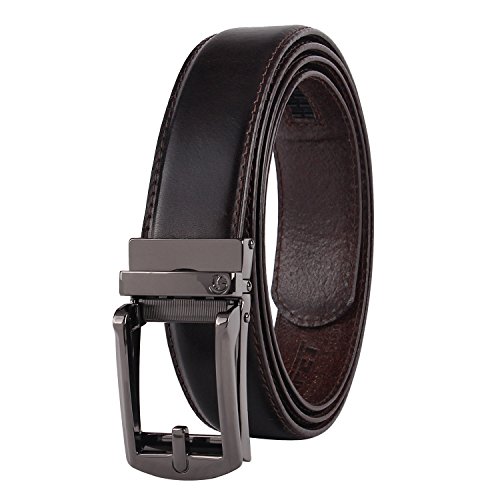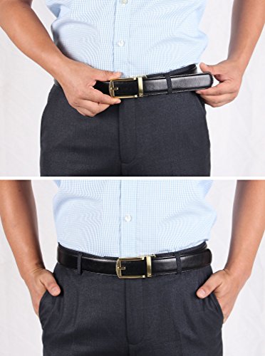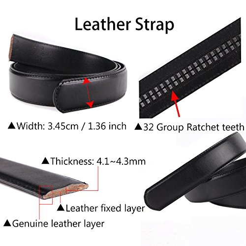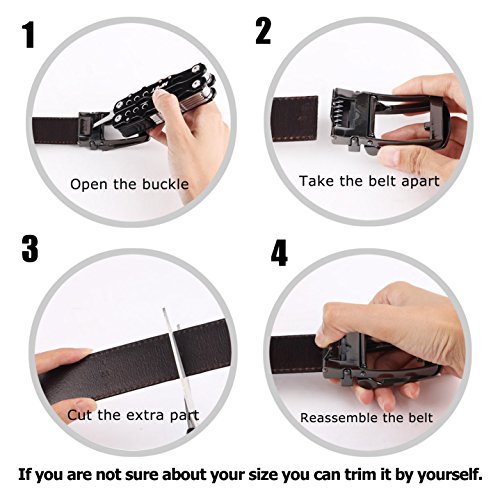-. Feature : Full Grain Automatic Ratchet Leather Belt. 100% vegetable tanned leather, environmental, flawless, top-quality, nickel free belt. Durable leather belt with bonden leather interlayer, which imported via Germany. Premium raw material, 10 years quality guaranteed / Trim to fir your waistline. You can trim the strap length by yourself, if the belt is too long. Micro-adjustable 32-position ratcheting track system, abrasion -proof and strong bite force, never slip when you're wearing it. Comfortable, soft / 1.4inch (3.5cm)width belt with zinc alloy bucke.Belt buckle and belt body removable and interchangeable. Handmake edge stitching, promise the belt never break. / One-piece design Ideal men accessory to wear as an everyday belt, goes great with uniform, jeans work trousers, suit trousers, etc. Classic design features a clean, timeless look for any occasion / It will be one of the best choices as a gift to teenager, office worker, family, lovers or friends. For a great fit, need to add 8inch (20cm) base on your pant's size
