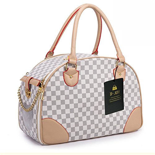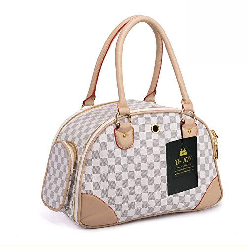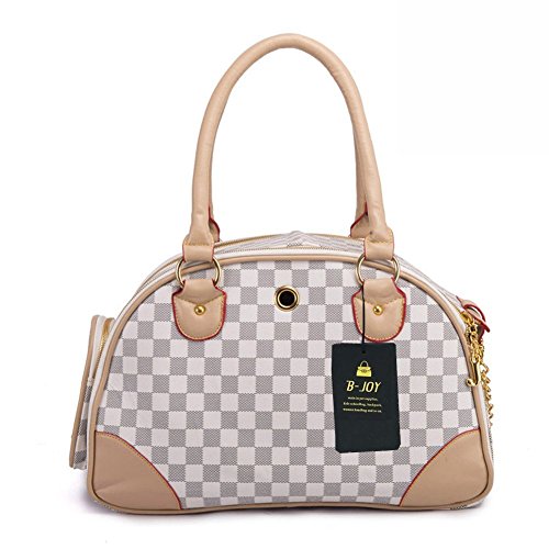 -. Title : B-JOY Fashion Dog Carrier PU Leather Dog Handbag Dog Purse Cat Tote Bag Pet Cat Dog Hiking Tasche (S(38cm*23cm*17cm), White)