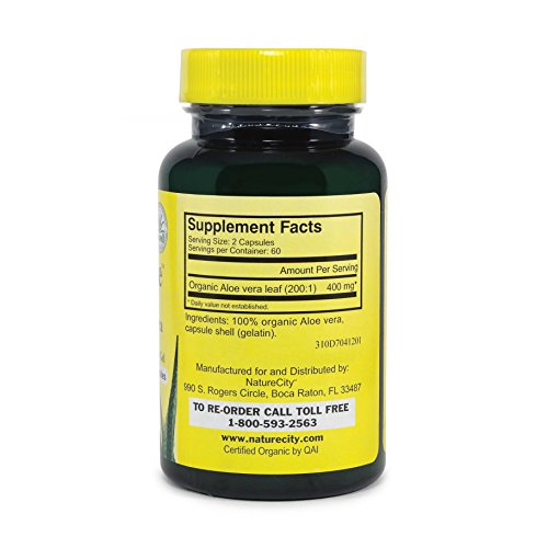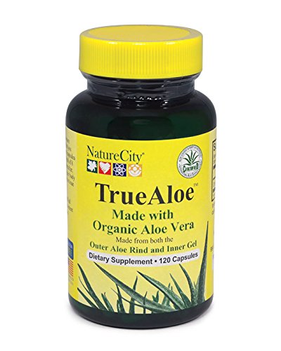 NatureCity TrueAloe Organic Aloe Vera - 120 Capsules 200mg per capsule (200:1 Extract) - 1 Count (Single Bottle)