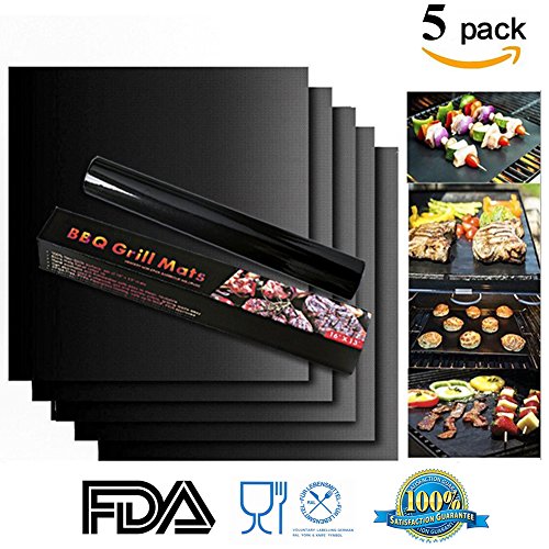 [Set of 5] BBQ Grill Mat,Non Stick Reusable Barbecue BBQ Grill & Baking Mats for Gas Electric Charcoal Grill Ovens Microwaves Home Cook,FDA- Approved