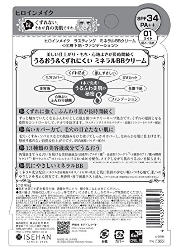 -. Title : Kiss Me Heroine Make Lasting Mineral BB Cream SPF34 PA++ 01 Light 30g