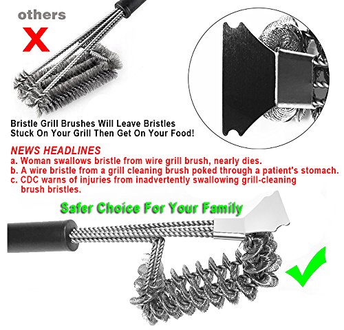 Grill Brush - Bristle Free - Bbq - Barbecue Grill Brush with Scraper - Commercial Stainless Steel Bbq Grill Cleaner - Safer Choice No Bristles in Your Food