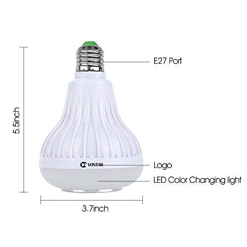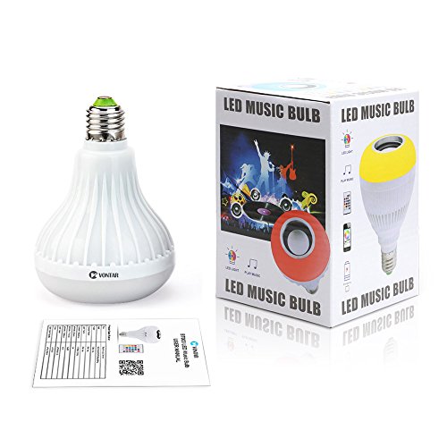 VONTAR E27 Smart Bluetooth Light Bulb Speaker Music Playing Dimmable Wireless LED Light Lamp Player with 24 Keys Remote Control