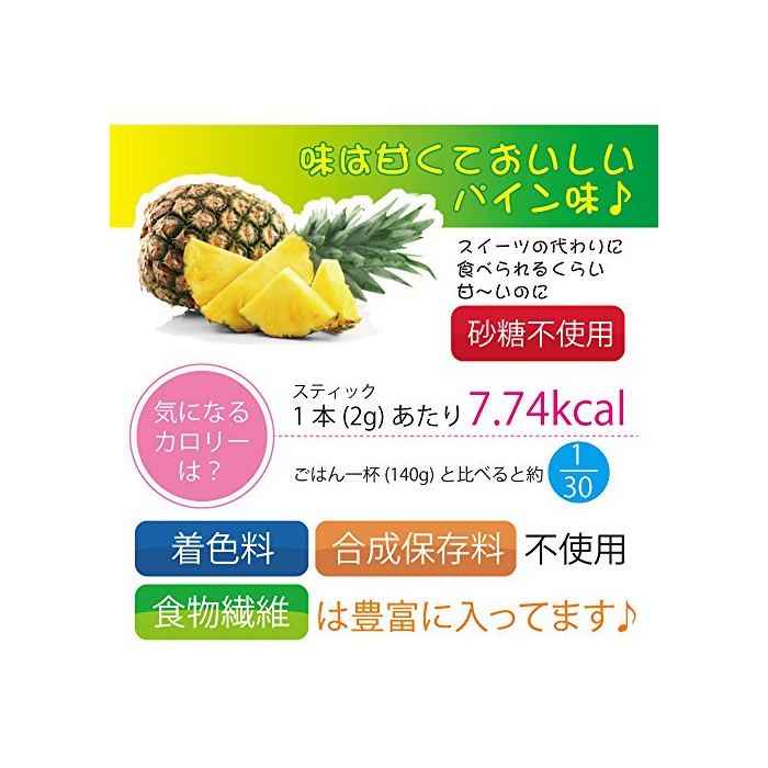 핸드백에《슷포리》들어 가는 미니 사이즈의 스틱 타입에 휴대 편리!물 없이도 마시기 쉬운 과립 타입이기 때문에 오피스에,레스토랑에서,집에서,마시고 싶을 때 갑자기 lek 레어 차지OK★맛은 달콤하고 맛있은 파인애플 맛.스위트 대신에 먹을 수 있는 정도감~있는 것으로(에) 설탕 불사용!「착색료」「합성 보존료」도 불사용. 「음식물 섬유」서는 풍부하게 들어가 있습니다♪