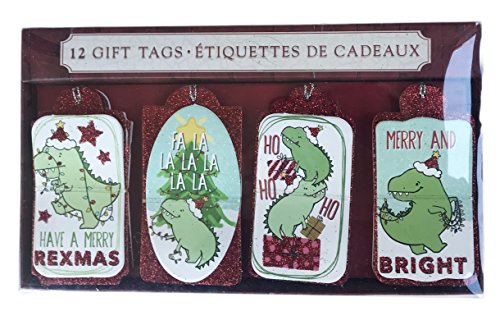 (Punch Studio)/Stationery Party Supplies/Gift Wrapping Supplies/DIRECT FROM USA/Have a Merry Rexmas Dinosaur T-Rex Themed 12 Christmas Holiday Gift Tags