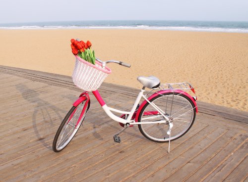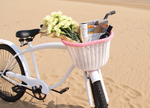 - Title : Colorbasket Adult Front Handlebar Bike Basket, White with Pink Trim