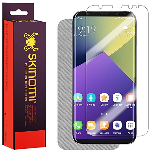 -. Title : Skinomi TechSkin - Galaxy S8 Screen Protector + Silver Carbon Fiber Full Body Skin / Front & Back Wrap Clear Film / Ultra HD and Anti-Bubble Shield