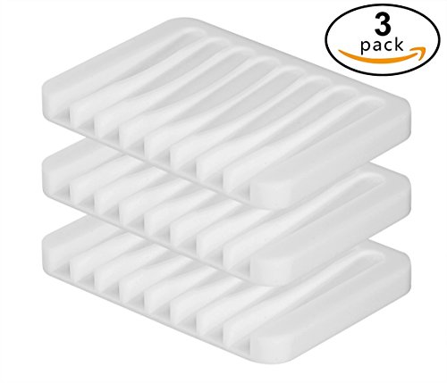 - METERIALS: 100% Silicone, theyt are soft and pliable. Color White, perfect match your bathroom and kitchen. Package includes 3 Pieces of Soap Dishes.