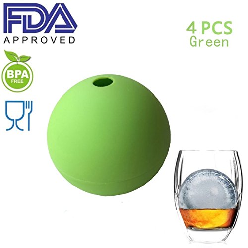 NDHT Ice Ball Maker Mold Sphere Large Tray Perfect for Whiskey Cocktail and Any Drink,Green,Set of 4