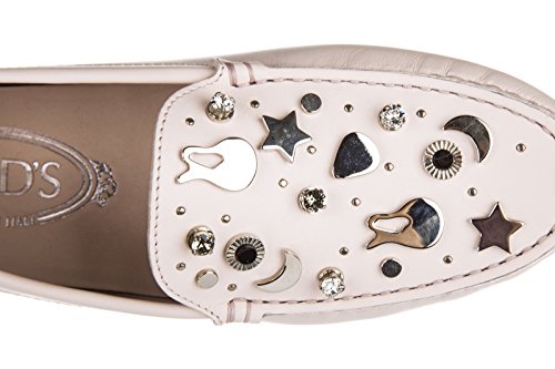 Tod's women's leather loafers moccasins gommini guitar pins pink