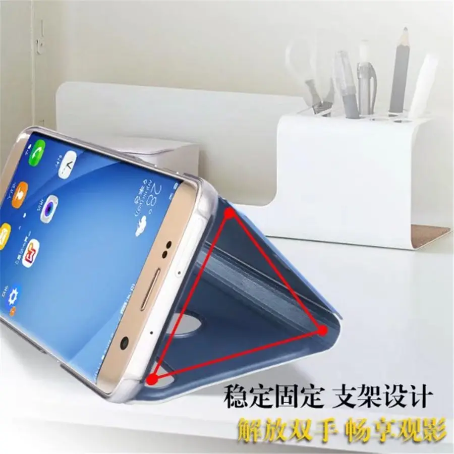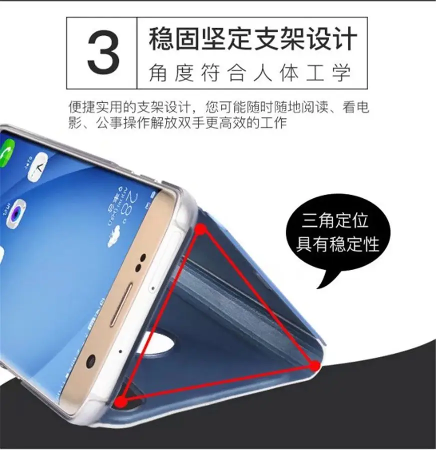 Function 1:Luxury Flip PU Leather Window View Clear Plastic Mirror Cover Fundas