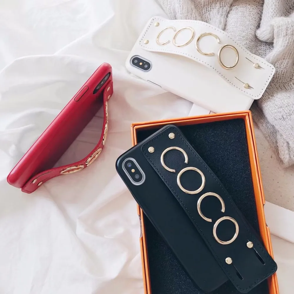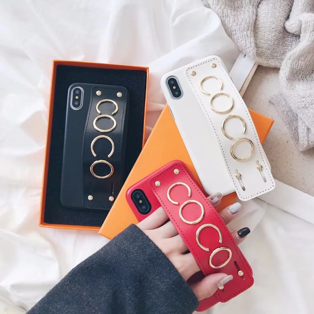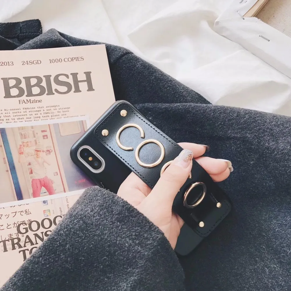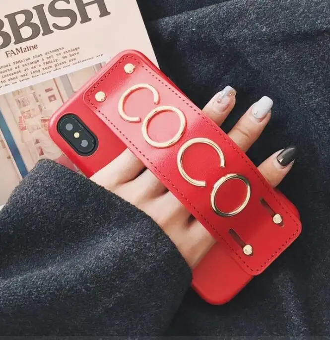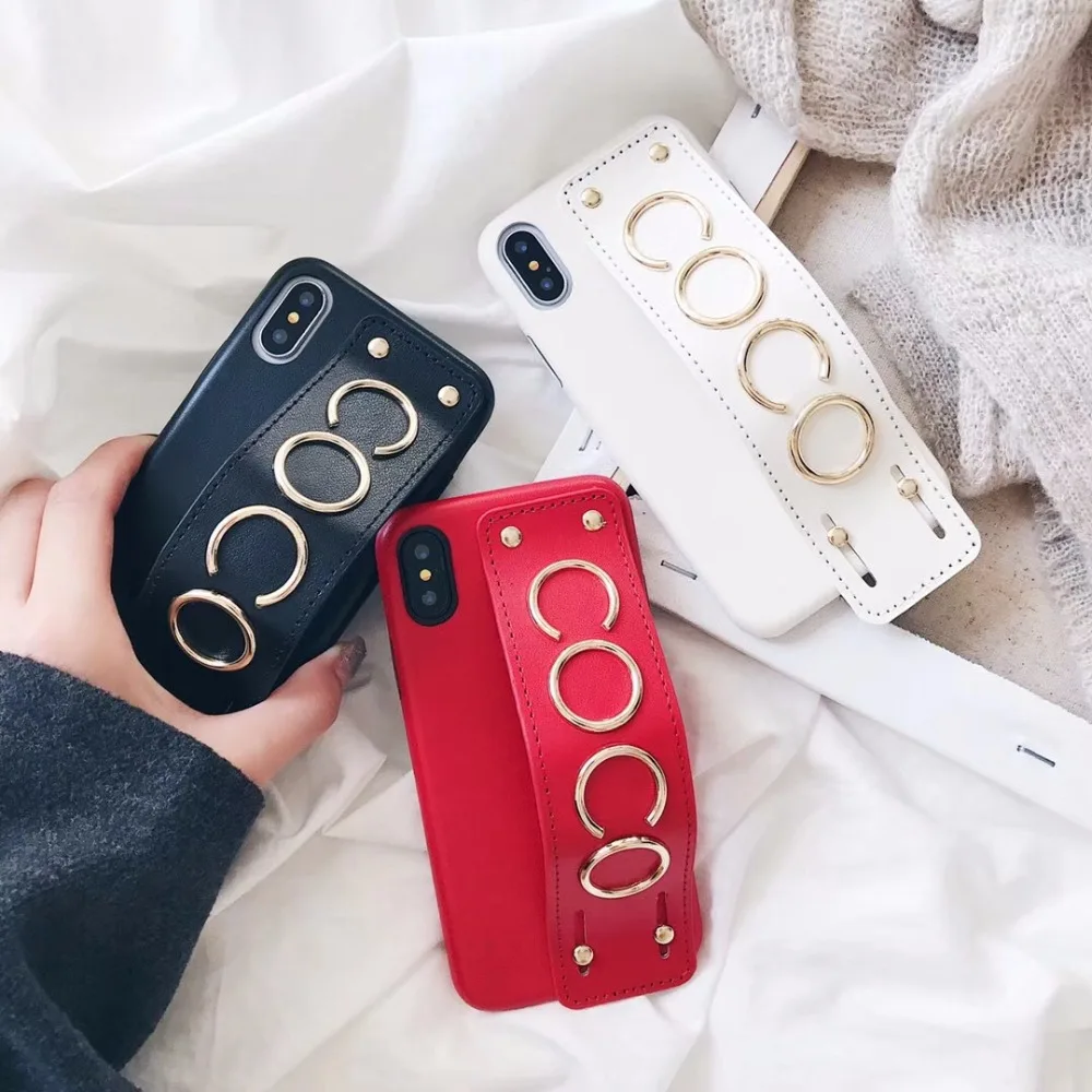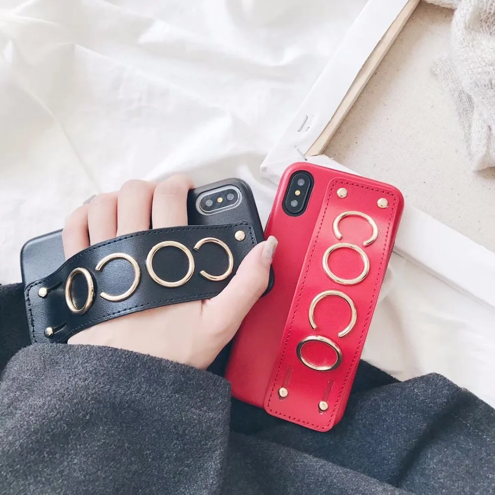 design2:for iphonex 7 8 6s plus studded grip strap case leahter cover brand