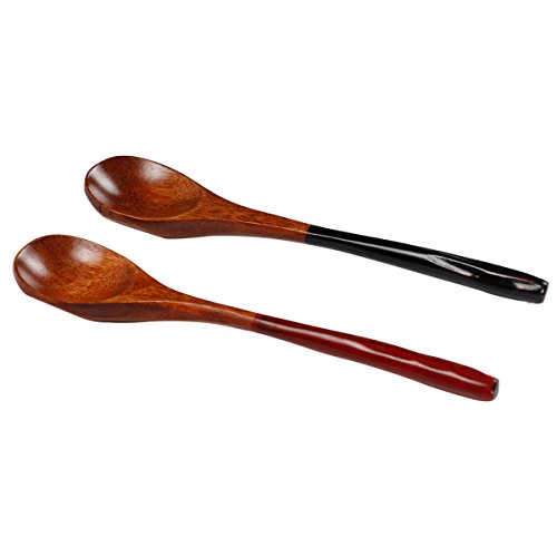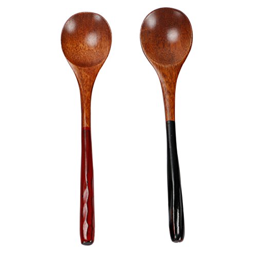 Geeklife Wood Stirring Spoons , Handmade Japanese Tortoise Shell Soup Spoon Couple Set , 5.5 inches
