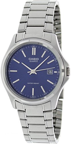 Brand, Seller, or Collection Name:Casio Model number:EAW-MTP-1183A-2A Part Number:MTP1183A-2A Item Shape:Round Dial window material type:Mineral Display Type:Analog Clasp:Fold-over-clasp Case material:Stainless steel Case diameter:37 millimeters Case Thickness:11 millimeters Band Material:Stainless steel Band length:Men's Standard Band width:27 millimeters Band Color:Silver Dial color:Blue Calendar:Date Special features:measures-seconds Movement:Quartz Water resistant depth:50 Meters