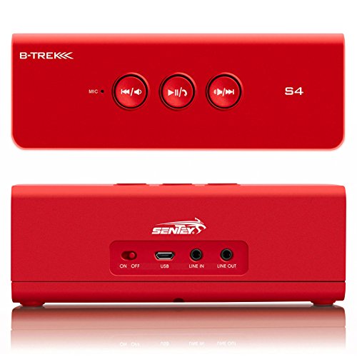 - Title : Sentey® Bluetooth Speaker B-Trek S4 (RED) up 6 hours of play time - Built-in Mic for Handsfree - 10 Meter - 33 Foot Range - Rechargeable Lithium Ion Battery - Wireless - AUX Line in & Line out allows Music Playback From Various Sources / Works with iPhone, iPad Mini, iPad 4/3/2, iTouch, Blackberry, Nexus, Samsung and Other Smart Phones and MP3 Players