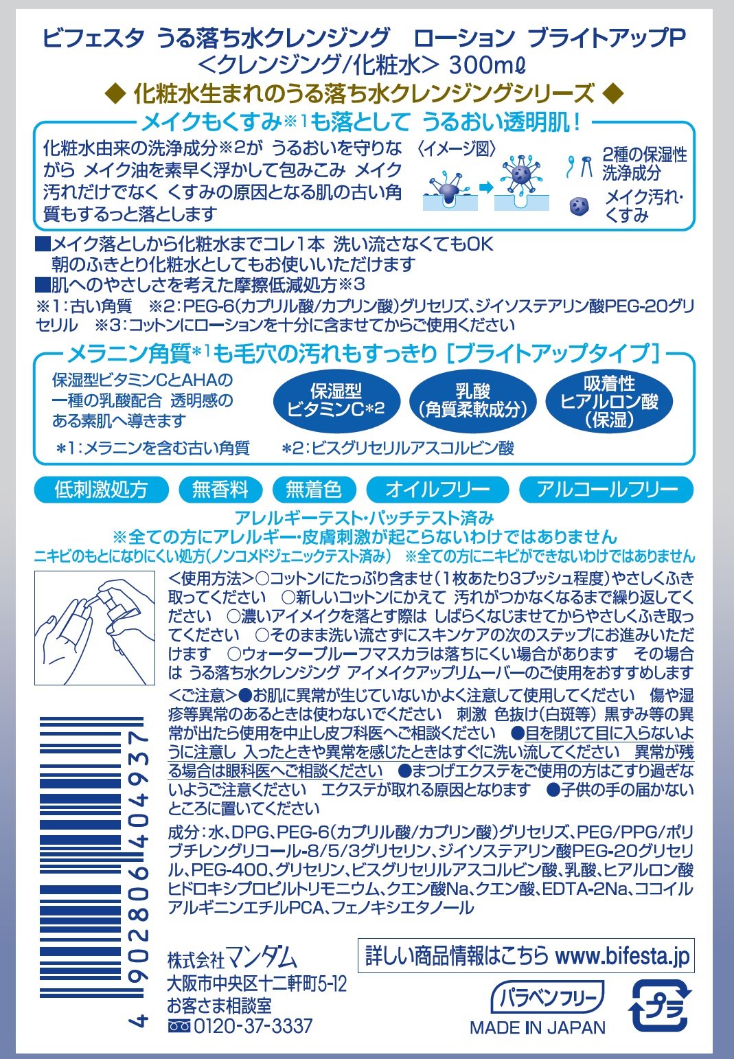 Bifesuta Ur Falling Water Cleansing Lotion Bright up 300ml