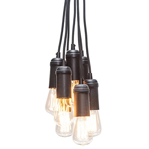 Globe Electric 7-Light Vintage Edison Cluster Mini Pendant, Black Finish, Black Designer Woven Fabric Cord, 65110