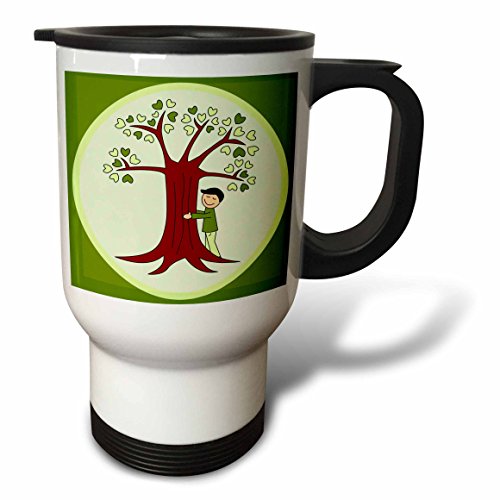 3dRose Cute Tree Hugger Design Brown and Green Travel Mug, 14-Ounce, Stainless Steel