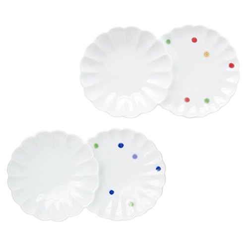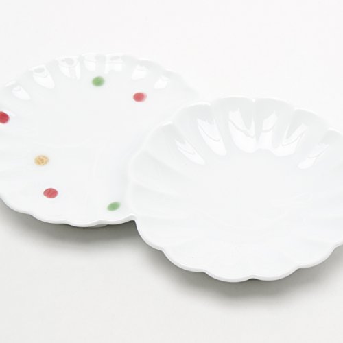 원본상품명: 波佐見? 小分け菊皿2枚セット(色彩水玉?/色彩水玉赤) 14.5cm 重山陶器 jza0152