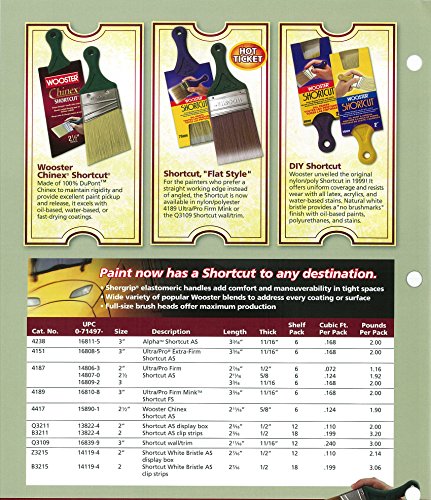 Great for 1) all medium-bodied coatings like Acrylic paints or latex enamels, 2) warm temperatures indoors or out, and 3) whenever a painter wants a time-saving firm Brush
