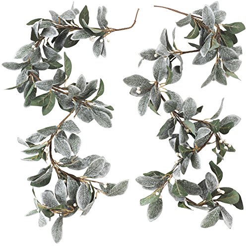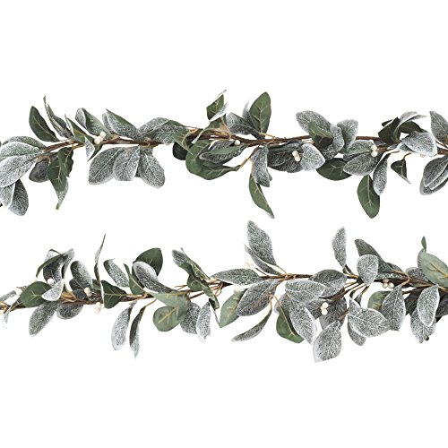 SARO LIFESTYLE Artificial White Berry Frosted Leaf Branch Garland, 24" x 24", Green